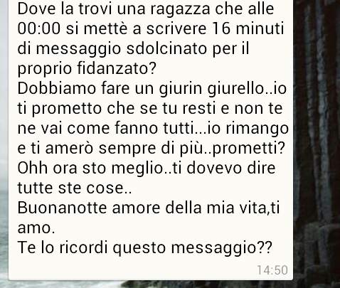 Da quando sei nella mia vita mi fai venire voglia di essere il meglio di me. Non dimenticherò mai le milioni di volte che sei venuto a casa con lintento di studiare per poi finire a non fare un cazzo come sempre a preparare da mangiare a dormire a coccolarci e maledirci la sera per essere sempre poco.